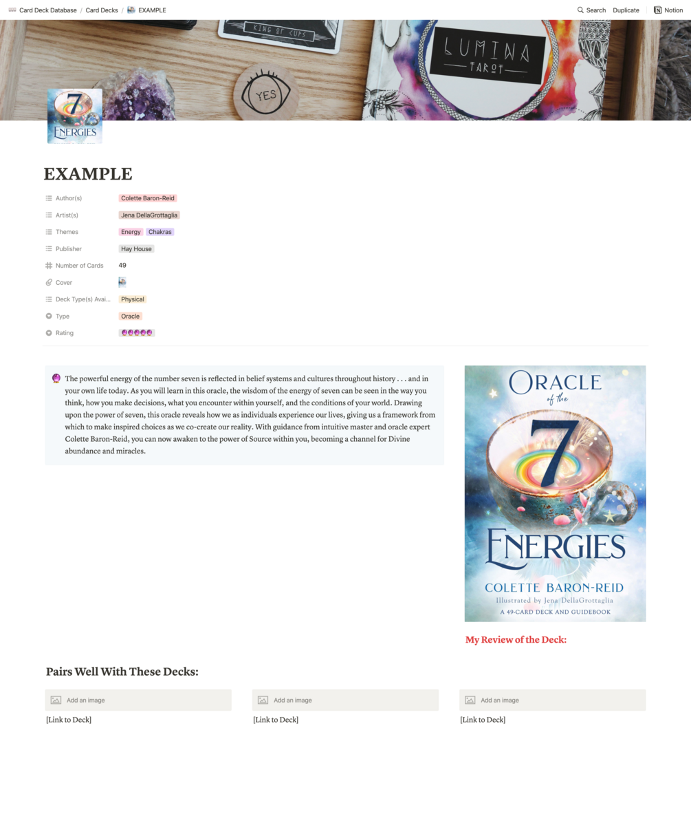 If, like me, you are obsessed with multiple decks—having a database is a great way to keep track of your decks, the authors, artists, themes, etc. My deck database has given me a lot of organization for my readings, but it also allows me to analyze and pivot when necessary.